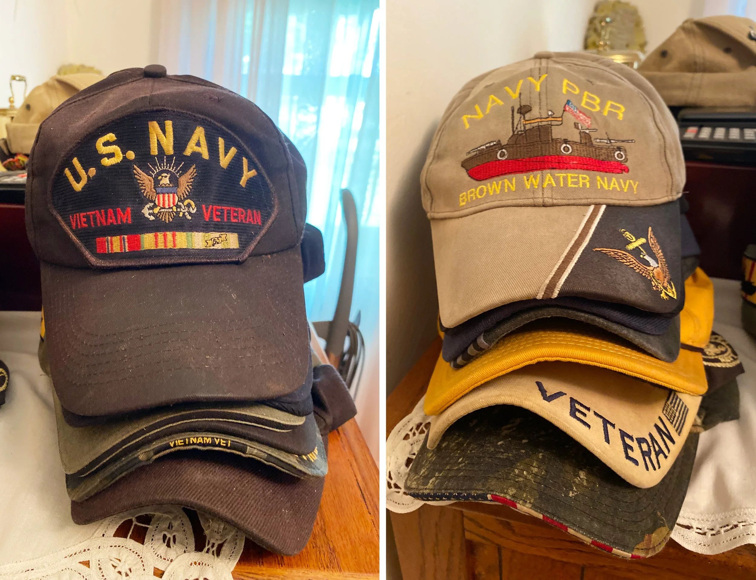 Dad wasn’t a material man, but two things he loved to wear most was his baseball caps and wrist watches. He sported these hats everywhere. And as you can see, he was a proud patriot. One of my last memories of these hats was how he wanted one at the hospital to cover his hair because he didn’t like how it looked messy. He always cared about how he looked. I think my love of hats came from him.